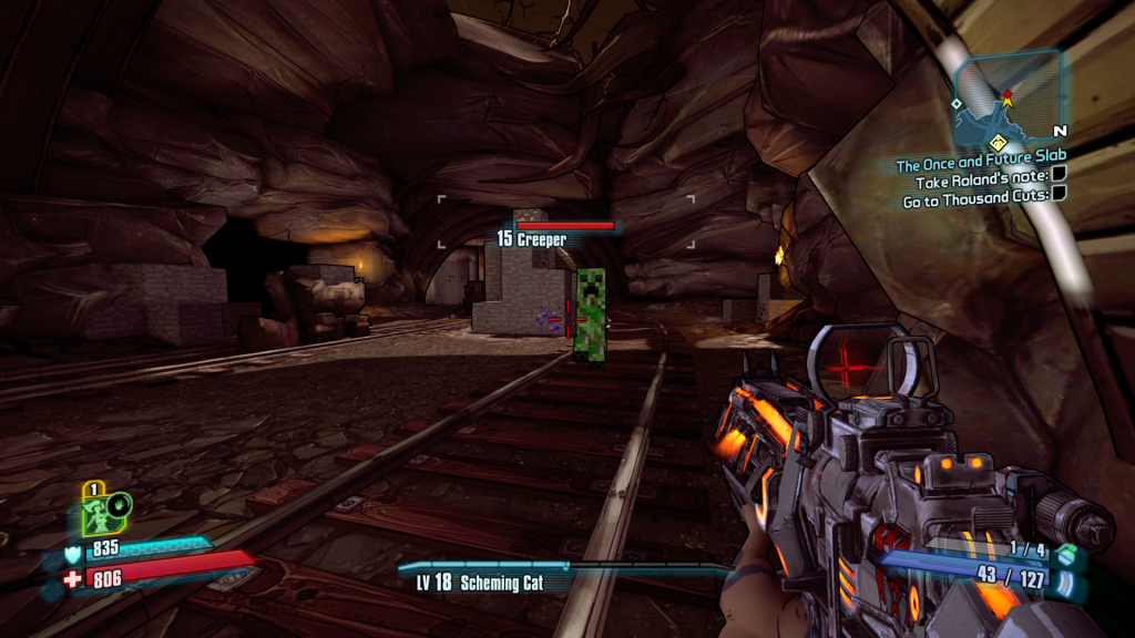 This is a minor point, but it’s something I always love in a game, and I just had to write about it here. BL2 is *full* of references, to the point where I’m almost smiling like a 5 year old every time I see one. From little tiny references such as the PWR Loader in the middle of the game (fantastic reference to Aliens there Gearbox!), or the massive Minecraft easter egg that is a whole playable area and rewards a cosmetic, I could talk about these forever!